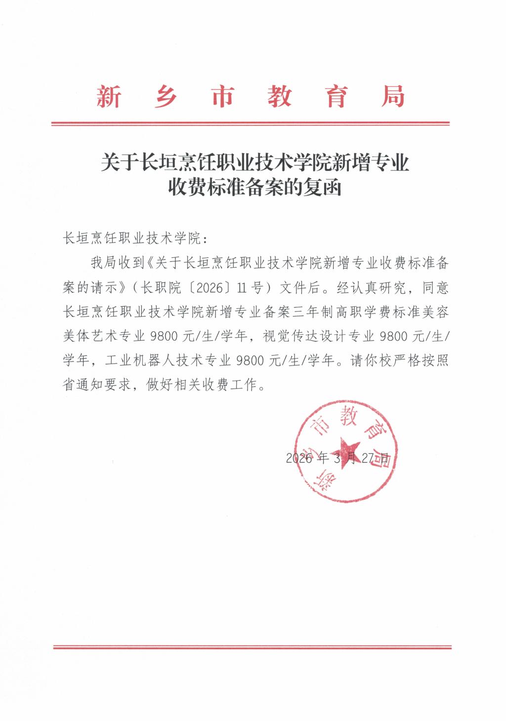 下一条:关于长垣烹饪职业技术学院收费标准的公示